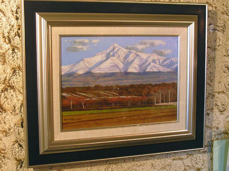 ご紹介下さった■北浦 晃 自選による油彩画展 テーマ別 Ⅲ「風景」(会場:美唄市民会館)と■「北浦 晃 風景画小品展」(会場:美唄・喫茶「あぶみ」)=会期:9月16日(土)~24日(日)=の取り付け作業が、若い人たちの手で終わった夕方、ご当人が室蘭から、例のシャンデリアつき会場にやって来ました。 |