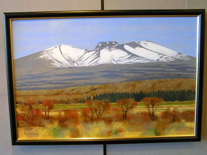 新作の2点(50号)の「気配Ⅰ」は晩秋の長かった今年の季節の中で札幌の初雪の前日の冷たい空気間から雪の訪れの気配だったのです。そして右の「気配Ⅱ」は夏から秋へうつろう一瞬に紅葉のさきがけにみせる春の新緑にも似た彩りを秋への気配として定着させた1枚なのです。これが意味ありげなタイトルの答えです。今後もどうぞよろしくお願い致します。 |
