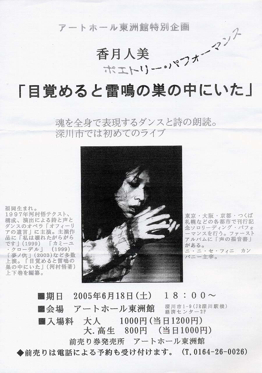 | ポエトリー・パフォーマンス 竜馬@管理人 - 2005/06/13(Mon) 10:27 No.2945 |