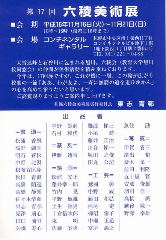 | 展覧会 投稿者:竜馬@管理人 投稿日:2004/11/15(Mon) 11:13 No.2177 |