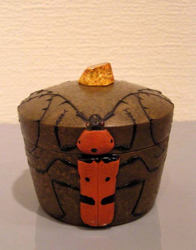 写真の方は、露木繁雄さんです。サインしていただいた本は、『カミキリムシの魅力』。この本は4人の共著なのですが、「読んでいるととても楽しく、カミキリムシを捕りにいきたくなっちゃう」本なので大好きなのだそうです。露木さんは穏やかで人を惹きつける魅力のある方だそうです。 |