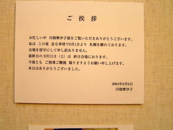 | Re: 展覧会 ねむいヤナイ@北海道美術ネット - 2004/09/06(Mon) 21:31 No.1868 | |