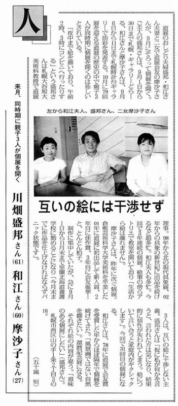 | 今日から「川畑 盛邦展」 投稿者:竜馬@管理人 投稿日:2004/09/01(Wed) 10:34 No.1837 |