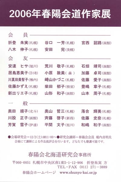 | 展覧会案内 投稿者:岩松@管理人代行 投稿日:2006/11/20(Mon) 13:50 No.4421 |