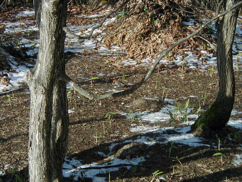 分かりましたよ。直前の樹木だけの画像を拡大させたら、カケスがとまっていますね。 |