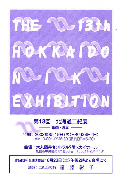 | 二紀会北海道支部展 投稿者:竜馬@管理人 投稿日:2003/08/09(Sat) 14:35 No.523 |