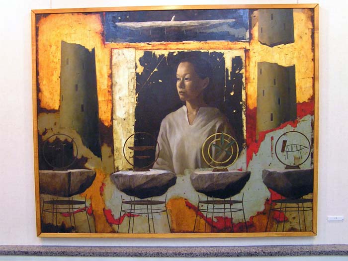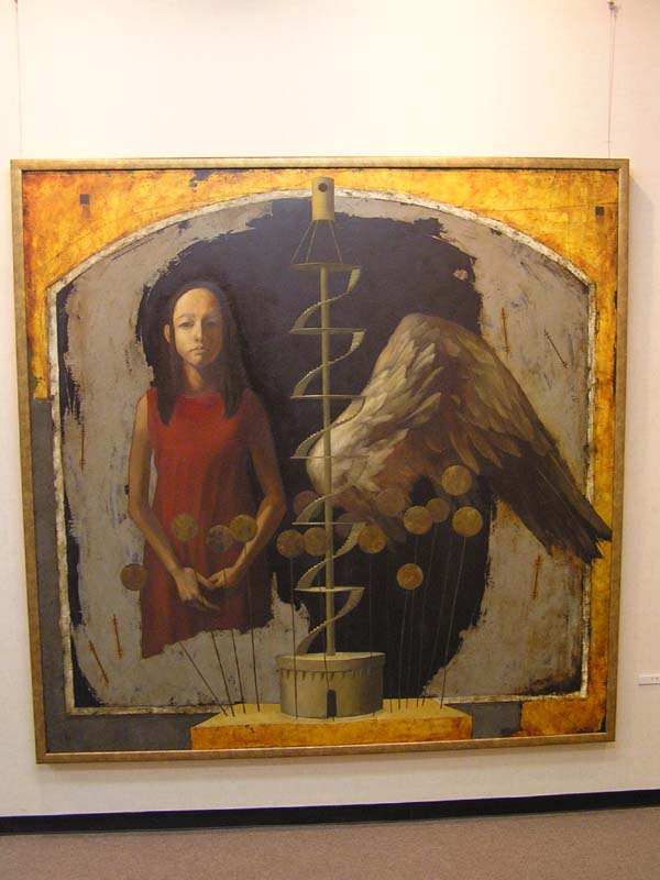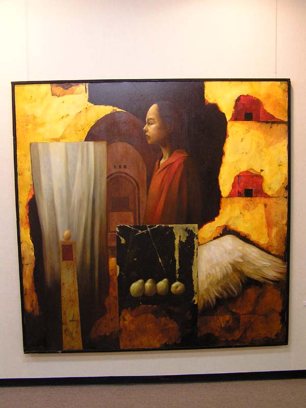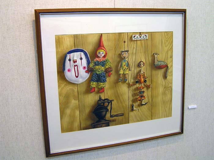 しっかり描き込まれた作品は,HP上でも作品の雰囲気が伝わってくるものですね。「直接見たかったあ」と思う作品に会えました。それにしても,時代は,やはり,夫婦愛でしょうか。(笑)アクリルでカバーってすごいですね。会場と作品が制作された時空間が一体化されてますね。あの例のカメラのなせる技ですか? |