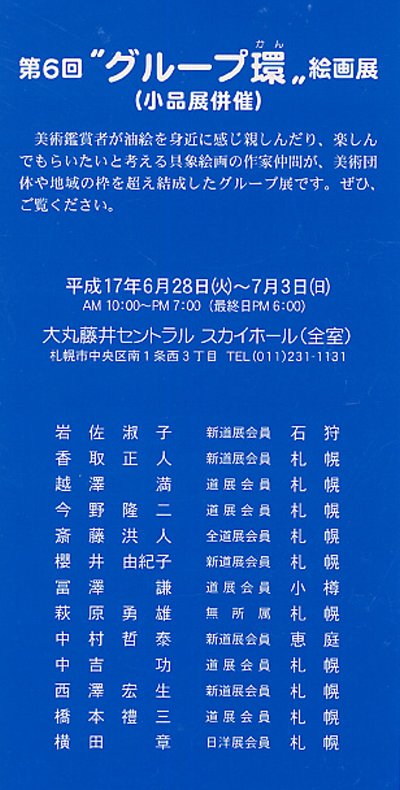 | 展覧会案内 投稿者:竜馬@管理人 投稿日:2005/06/18(Sat) 10:34 No.2960 |